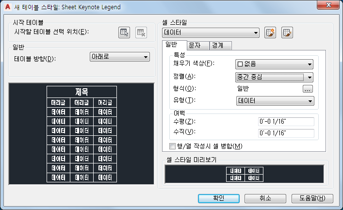 키노트 범례는 AutoCAD 테이블 스타일을 사용합니다. 다음 과정에 따라 사용 가능한 테이블 스타일을 수정하십시오.