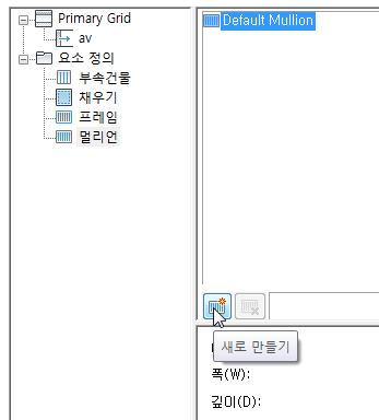 다음 절차에 따라 폭 및 깊이를 지정하여 멀리언을 정의하십시오.