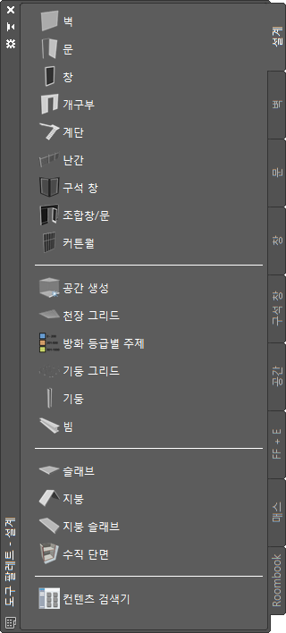 | CAD 관리자에 의해 작성된 사용자 도구 팔레트 | 프로젝트 또는 사무용 표준에 맞게 CAD 관리자가 사용자화한 조합창/문 스타일 및 특성 |