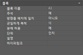 - 특성 팔레트의 블록 아래에서 주석에 대해 예를 선택합니다.
