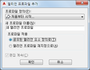 | 도면의 기존 프로파일에서 | 프로파일 정의에서 기존 프로파일을 선택하고 편집 계속을 클릭합니다. |