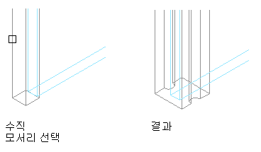 다음 절차에 따라 모든 수직 모서리 프레임 또는 수직 멀리언에 프로파일을 지정하십시오. 커튼월 모서리 프로파일은 모든 프로파일 또는 닫힌 폴리선으로 지정될 수 있습니다. 단순한 연귀 이음으로는 충분하지 않은 경우 프로파일 모서리를 사용하면 독창적인 구석을 작성할 수 있습니다.