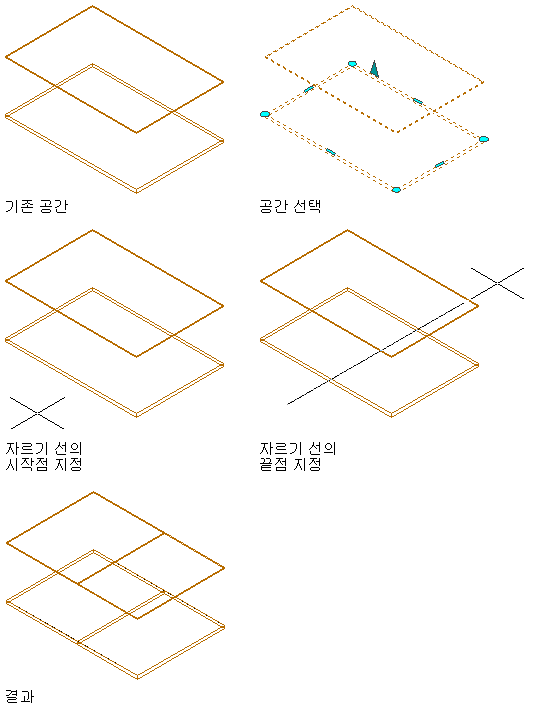 다음 절차에 따라 라인워크, AEC 폴리곤, 매스 요소 돌출, 공간 또는 이들 객체를 포함하는 블록을 사용자가 그리는 나누기 선에 의해 정의되는 둘 이상의 부분으로 나누십시오. 선의 각 면에 있는 부분을 별도로 선택할 수 있습니다. 이 옵션을 사용하여 닫힌 경계의 객체가 두 부분으로 나누어진 경우 두 부분 모두 닫힌 상태로 재작성됩니다. 지그재그 패턴의 열린 폴리선이 길이로 나누어진 경우 선택할 수 있는 많은 세그먼트가 작성됩니다.