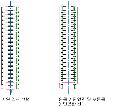 사용자 계단의 계단 윤곽 구성요소는 왼쪽 및 오른쪽 계단면, 첫 번째 디딤단의 단비 그리고 마지막 디딤단 또는 계단참의 앞면으로 나타납니다.