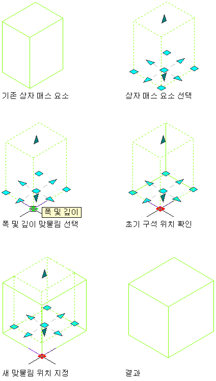 반대 구석의 위치는 매스 요소 구석을 이동하는 동안 고정된 채로 남아 있습니다.