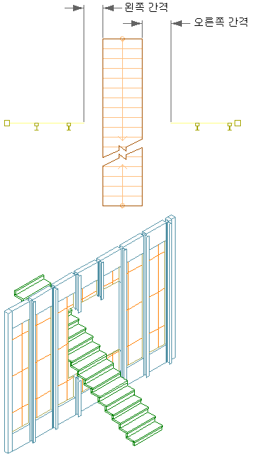 | 직선 계단 및 다중 계단참 계단의 간섭 조건을 위한 좌우 측면 간격 지정 | 왼쪽 및 오른쪽 간격의 값을 입력합니다. |