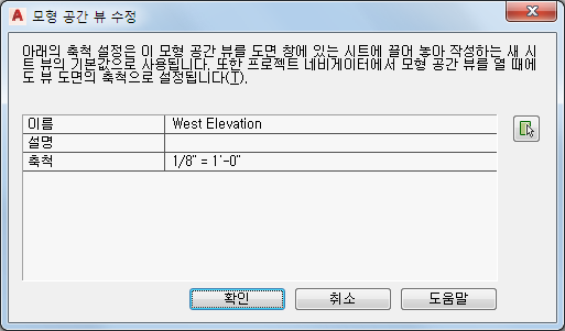 모형 공간 뷰에 대한 설명 변경 설명에 대한 설정을 클릭한 후 변경합니다.