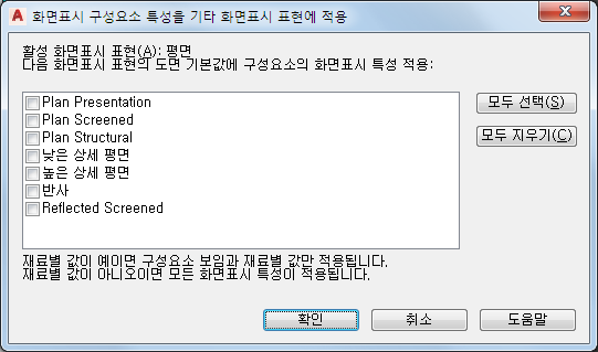 | 화면표시 기준 값으로 현재 지정된 레벨에서 전체 객체에 적용되는 화면표시 특성을 보거나 수정 |