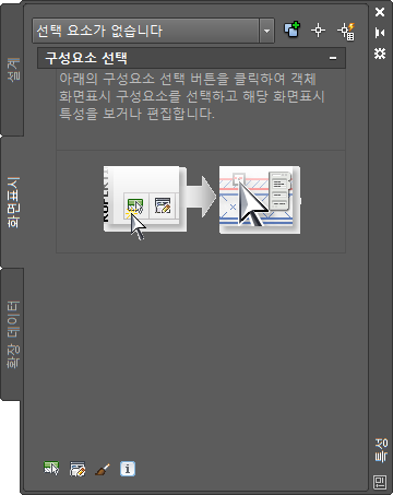 - 객체를 선택하지 않은 경우 화면표시 탭의 맨 아래에서