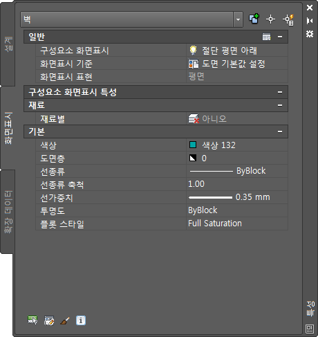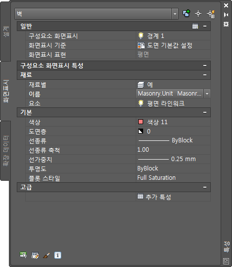 - 특성 팔레트에서 화면표시 탭을 클릭합니다.
