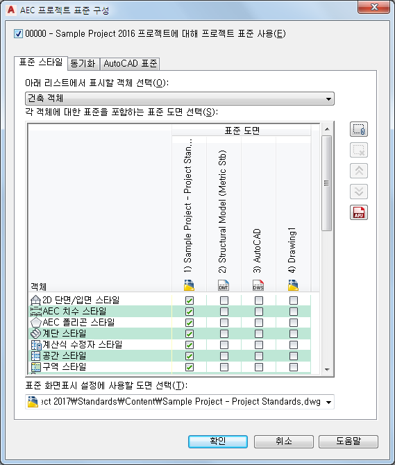 주: 스타일 표준 도면과 다른 화면표시 표준 도면을 사용하거나 도면이 여러 스타일로 이루어진 경우 스타일 표준 도면이 화면표시 표준 도면과 동기화되어 있는지 확인해야 합니다.