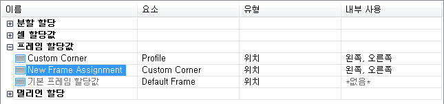 - 프레임 할당값을 사용할 프레임 모서리를 지정합니다.