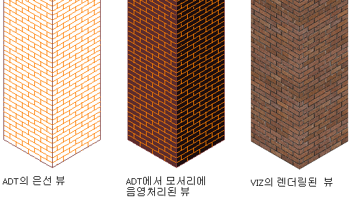 AutoCAD Architecture에서 재료는 벽돌, 콘크리트 또는 유리와 같은 건물 모형의 특정 마감 재료에 해당합니다. 재료는 설계 과정에서 평면도, 단면, 입면 및 렌더링을 작성하는 데 유용합니다. 또한 재료는 객체 스타일의 화면표시 특성을 관리하는 방법을 제공합니다.