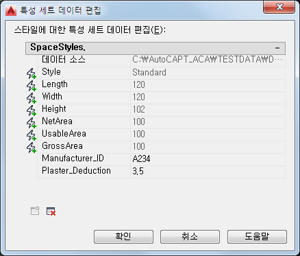 다음 과정에 따라 도면에서 외부 참조하는 객체에 부착된 수동의 스타일 기반 특성 세트 데이터 값을 편집하십시오.