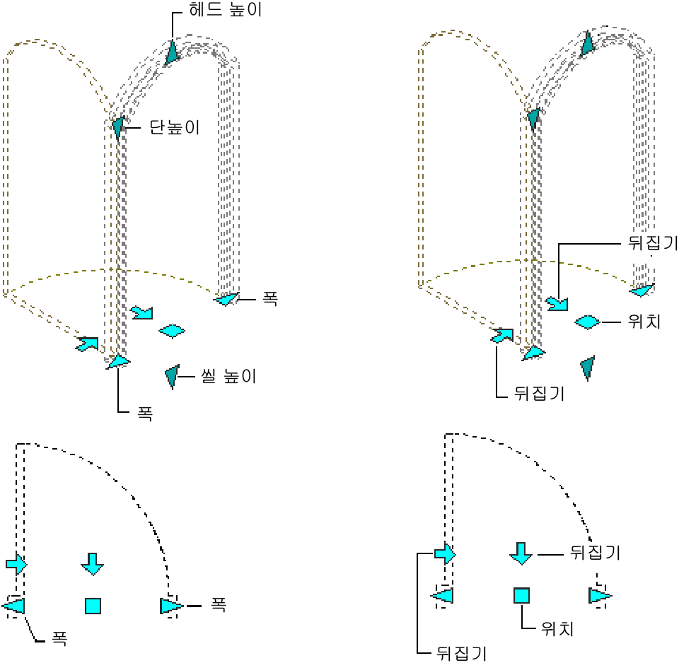 클릭) 그립을 선택하면 연관된 치수나 각도에 대해 원하는 값을 입력할 수 있는 입력란이 표시됩니다.