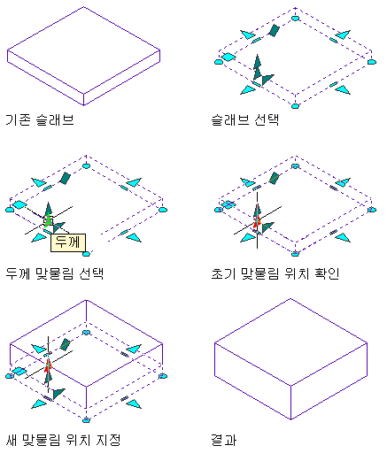 다음 절차에 따라 3D 등각투영 뷰에서 슬래브 또는 지붕 슬래브의 두께를 변경하십시오.