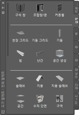 CAD 관리자 또는 다른 사용자가 작성한 사용자 팔레트는 프로젝트나 사무용 표준에 맞게 사용자화된 특성을 가진 지붕 도구를 포함할 수도 있습니다.