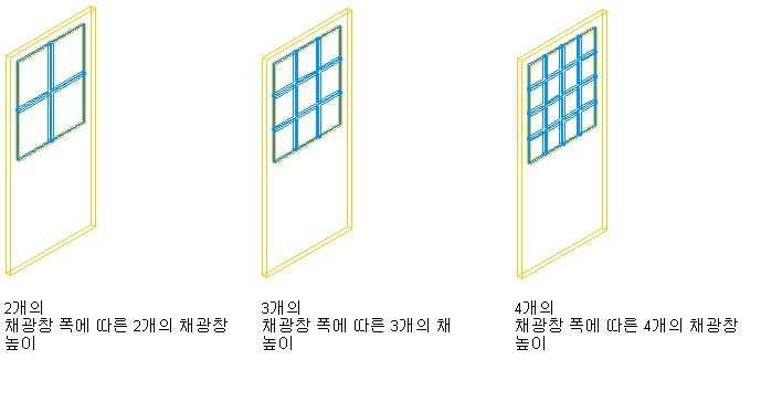 | 문살을 각 유리 구성요소에 적용 | 유리 구성요소에서 단일을 선택하고 색인 번호를 지정합니다. 채광창은 왼쪽 하단 구석에서 시작하여 시계 반대 방향으로 색인화됩니다. |