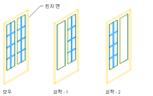 문살을 나타낼 모형 또는 입면와 같은 화면표시 표현에 대한 문 스타일의 화면표시 특성을 편집하여 문살을 추가합니다. 문살을 각각 화면표시 표현에 추가할 수 있습니다. 또한 문살을 단일 화면표시 표현에 추가하고 문 스타일의 모든 화면표시 표현에 문살을 적용할 수 있습니다. 화면표시 특성에서 문살 블록을 문 스타일의 유리 구성요소에 추가합니다. 각 문살 블록은 문 스타일의 화면표시 구성요소가 됩니다.