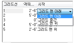 그리드 선 표의 시작에서 그리드 선이 간격띄우기되는 그리드 위치를 선택합니다.