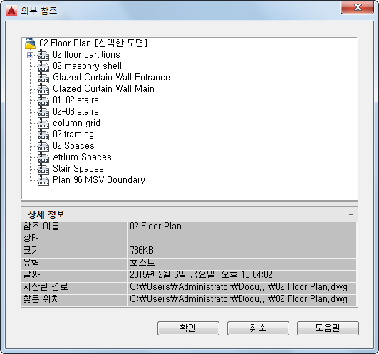 외부 참조 대화상자에 뷰에 있는 외부 참조의 리스트가 표시됩니다.