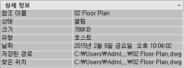 - 외부 참조 대화상자에서 외부 참조의 상세 정보를 봅니다.