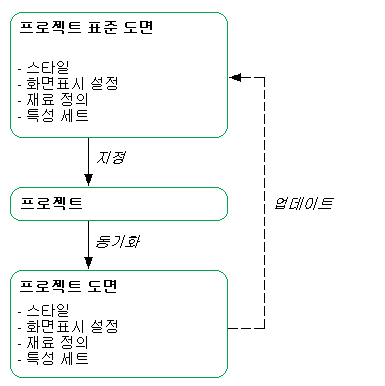 프로젝트 수명 주기 동안 언제든지 프로젝트를 프로젝트 표준과 비교할 수 있으며 표준과 프로젝트 도면 간에 버전 불일치가 발견되면 표준과 동기화할 수 있습니다. 또한 필요한 경우 프로젝트 도면에서 표준을 업데이트할 수 있습니다.