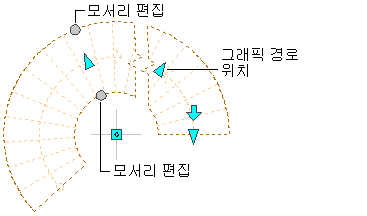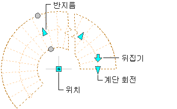 나선식 계단 그래픽 경로 위치 및 모서리 편집 그립