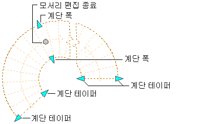 | (모서리) | 모서리를 추가하여 나선형 계단의 계단 폭을 변경할 수 있습니다. |