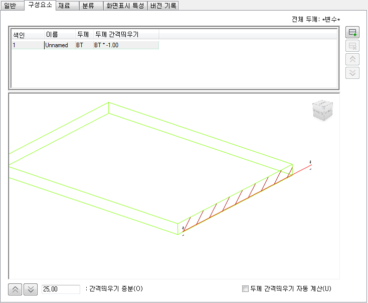 지붕 슬래브 스타일 탭에 포함된 객체 뷰어