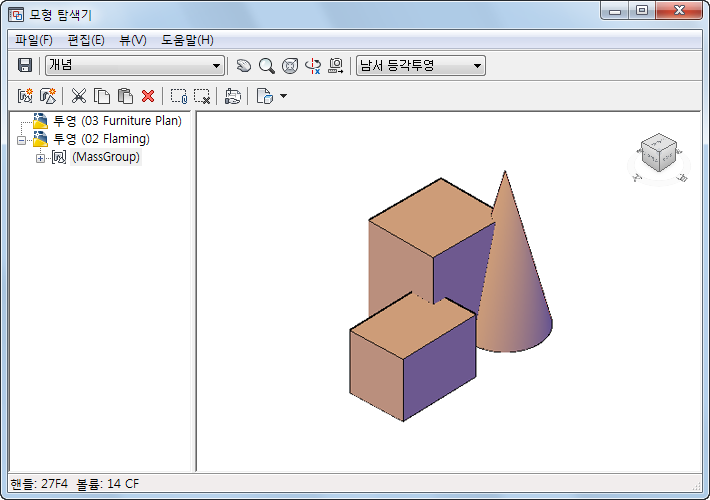 모형 탐색기는 매스 요소 및 매스 그룹을 작성하고, 보고 조작하는 창입니다. 모형 탐색기에서 객체 뷰어를 사용하면 수행하는 매스 요소 및 매스 그룹 작업을 미리 볼 수 있습니다.