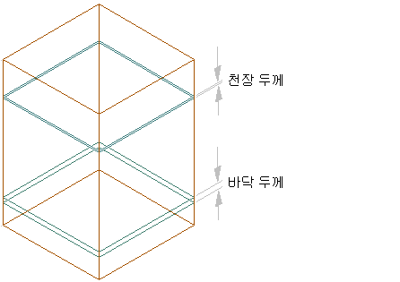 돌출된 3D 공간은 2D 공간과 비슷하지만 사용자 정의 돌출 높이가 있다는 점에서 다릅니다. 돌출된 공간은 건물에서의 높이가 균일한 방과 같이 규칙적인 쉐이프를 갖는 3D 공간을 표현하는 데 유용합니다. 돌출된 공간에는 천장 위와 바닥 아래에 바닥과 천장 구성요소 및 공간이 있을 수 있습니다. 천장 위의 공간은 대개 방의 덕트배관, 케이블 및 전기 설치를 배치하는 데 사용됩니다.