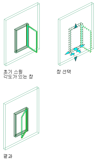 창 스윙 각도 또는 개폐 비율을 변경하려면