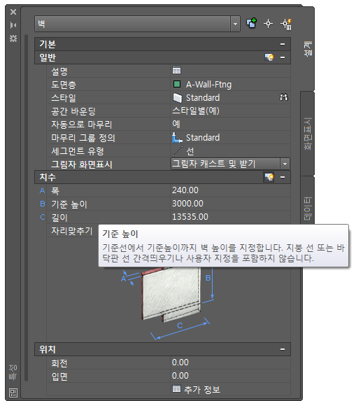 리스트의 특성 위에 커서를 올려놓으면 특성 팔레트에 툴팁이 표시됩니다.