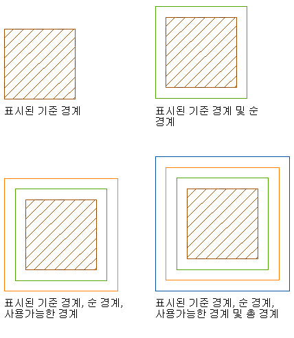 경계 사이의 간격띄우기 방식 및 계산 방식을 결정하는 여러 가지 방법이 있습니다.
