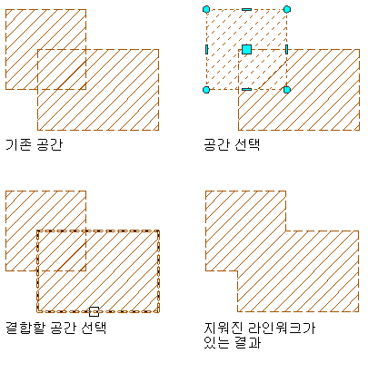 스타일 정의 경계 간격띄우기가 있는 공간을 병합할 경우 두 공간의 기준 경계는 병합되고 첫 번째 공간의 스타일에 정의된 경계 간격띄우기는 병합된 결과 공간에 적용됩니다.