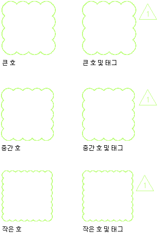 | 일반/기호 | 구름형 수정기호 도구에 태그가 포함된 경우 이 선은 태그에 사용할 블록 기반 기호를 지정합니다. 구름형 수정기호 도구에 태그가 포함되지 않은 경우 기호가 정의되지 않습니다. |