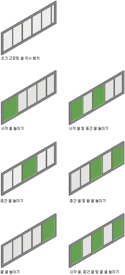 | 그리드 셀에 나머지 공간 추가 | 늘이기를 선택한 후 공간을 추가할 특정 셀을 선택합니다. |