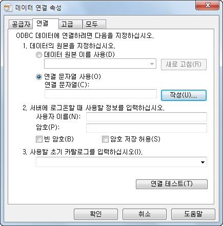 - 연결 탭에서 연결 문자열 사용을 클릭합니다.