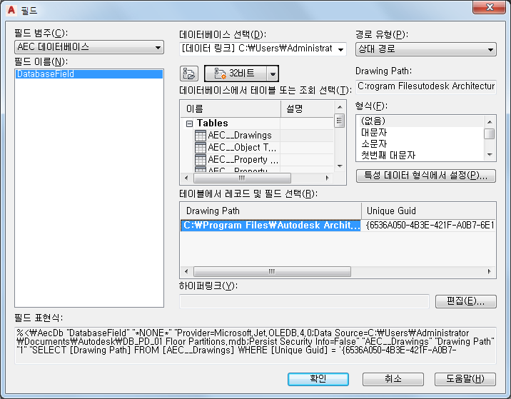 | AutoCAD 테이블 셀에 데이터베이스 필드 삽입 |