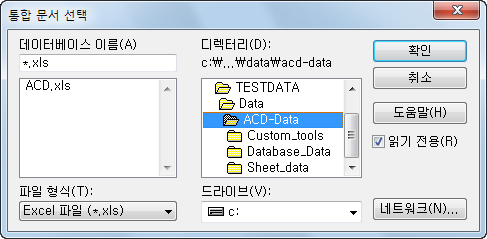 주: 아래 지침은 Microsoft Excel 파일의 데이터 소스에 대한 링크를 작성하는 과정을 설명합니다. 같은 방식으로 Microsoft Access 데이터베이스, 일반 ASCII 문자 파일 및 쉼표로 구분된 파일에 대한 데이터 링크를 작성할 수 있습니다.
