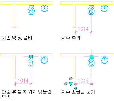 | AEC 치수 스타일에서 설정할 수 없는 객체의 기준점에 치수 기입(연관 치수 작성) | 다중 객체를 선택합니다. |