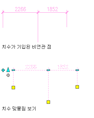 | 도면의 비연관 점에 치수 기입(비연관 치수 작성) | OSNAP이 해제되어 있는지 확인합니다. 명령행에 p(점 선택)를 입력하고 도면에서 점을 지정합니다. |
