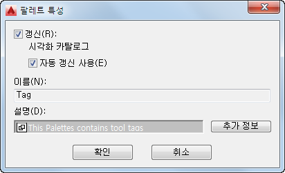 확인란 아래 문자는 팔레트가 업데이트될 컨텐츠 검색기의 카탈로그 이름을 표시합니다.