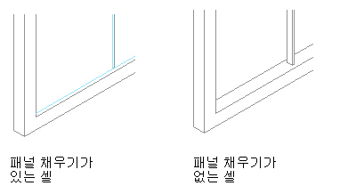 다음 과정에 따라 셀의 채우기를 제거하여 해당 셀을 비어 있는 상태로 두십시오. 이렇게 하려면 없음을 요소 정의로 사용합니다. 없음을 사용하면 셀과 접하는 모든 프레임 모서리도 제거되지만 멀리언에는 영향을 주지 않습니다.