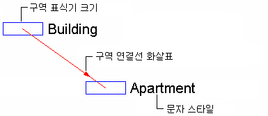 다음 과정에 따라 구역의 문자 스타일, 구역 표식기 크기 및 구역 연결선 화살표를 정의하십시오.