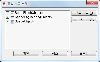 도면 열기를 클릭합니다. 이 특성 세트는 SpaceEngineeringObjects, ThermalProperties 및 ZoneEngineeringObjects 스타일로 구성됩니다.