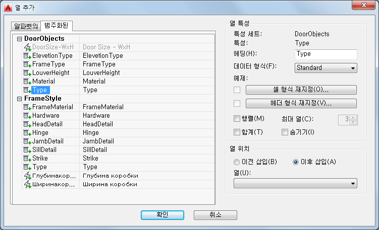 열을 추가하기 전에 일람표 테이블 스타일이 적용하는 객체도 지정해야 합니다.