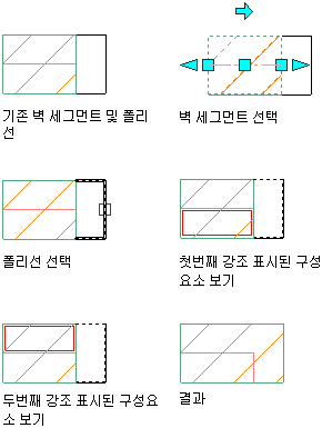 다음 과정에 따라 벽 끝마감 폴리선을 단일 구성요소 벽 세그먼트의 구성요소와 연관시키십시오.