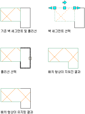 다음 예에서는 벽 끝마감 폴리선이 벽 구성요소와 연관됩니다.